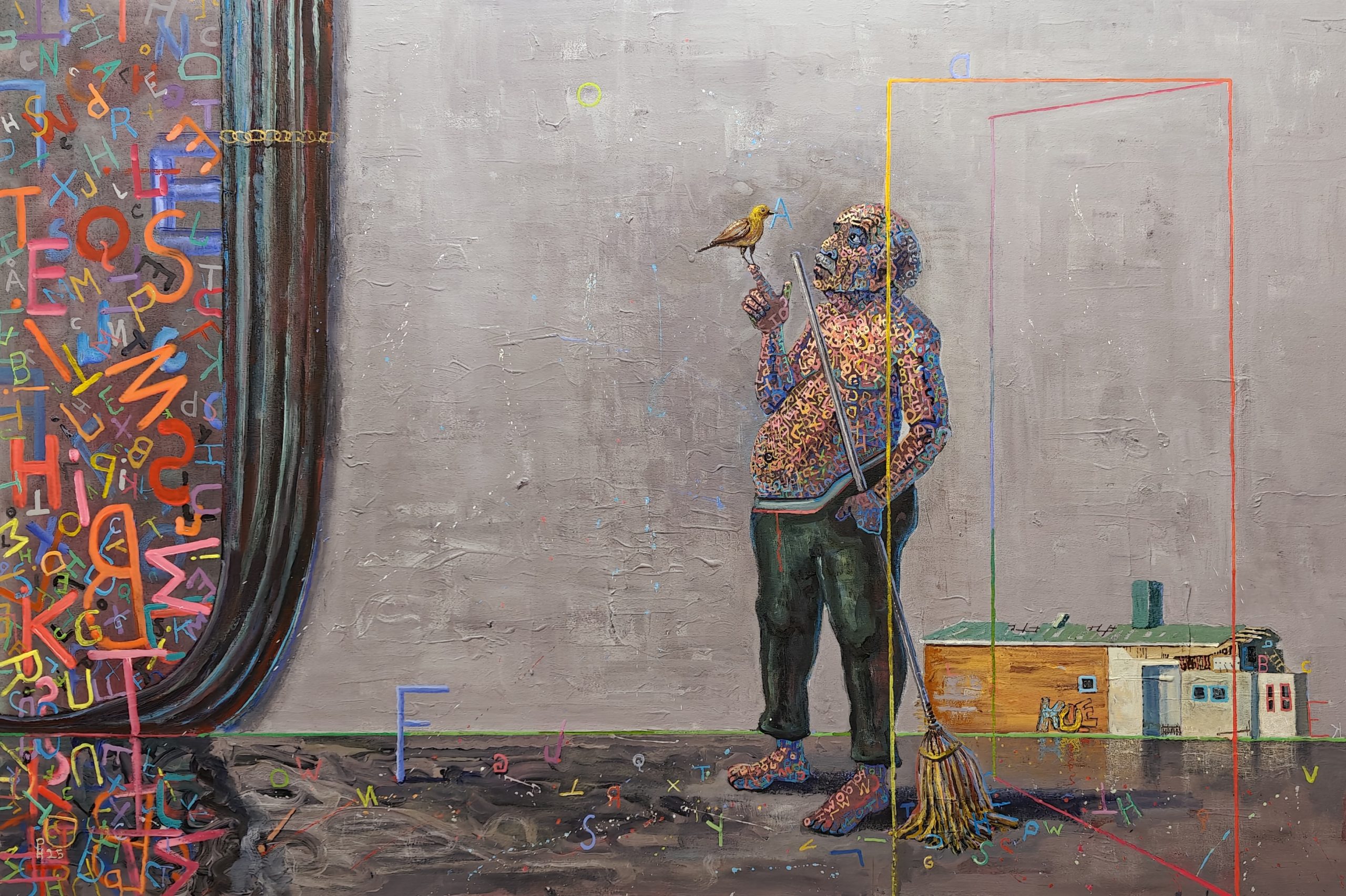 Näyttely koostuu maalauksista ja veistoksista, joissa käytän kirjaimia ihmishahmojen rakentamiseen. Kirjainten varaan rakennan pääasiallisen sisällön töihini, sillä ajatuksissani ihminen on voimaton sanojen kohde, mutta toisaalta hän voi luoda maailmansa ja itsensä kielen kautta uudestaan.